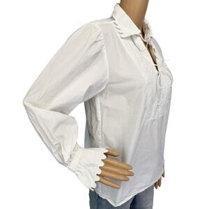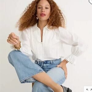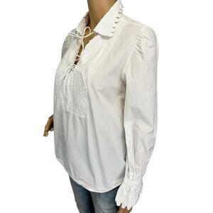 J. Crew Scalloped Cotton Poplin Popover Top White BL156 Size S