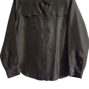 Ralph Lauren Silk Olive Green Utility Shirt Cabincore Luxury Minimalist Wm XL