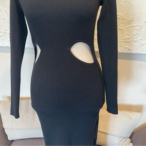 Abercrombie & Fitch Knit Ribbed Side Cutout Midi Dress Black Long Sleeve Sz XS