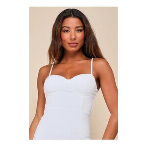 Lulus Passion For Glamour White Sleeveless Bustier Feather Midi Dress - Size S