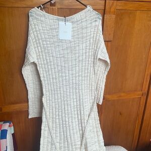 DISSH Cream Knit Maxi Dress. NWT. All Cotton. Left Side Slit. Fits as US8
