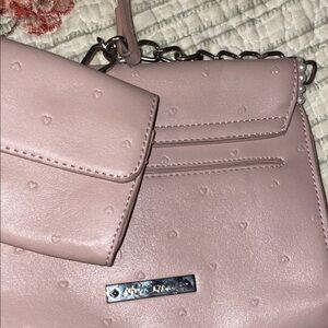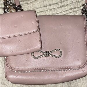 This elegant pink women's bag set features a stylish design with a charming heart pattern. Perfect for any occasion, it combines functionality with a touch of sophistication.