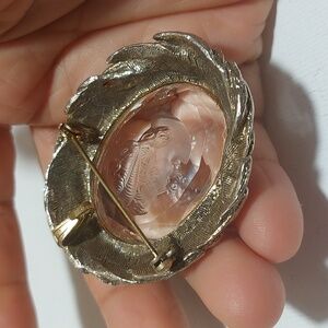 Vintage Victorian Carved CrystaI Intaglio Glass Cameo Silver Tone Frame Brooch Pin or Pendant