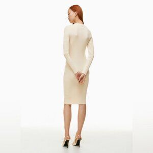 his is a mock-neck sweater dress with fully fashioned construction. It's knit from Wonder Yarn — the lightweight yarn that lives up to its name. This peachy-soft yarn offers the all-season warmth of wool, without the wool. It’s made with LENZING™ ECOVERO™ Viscose — responsibly sourced wood-based fibres produced through a process that reduces impact on forests, biodiversity and water supply. This version is constructed using a Wide Rib stitch with distinct columns for comfortable widthwise stretch.