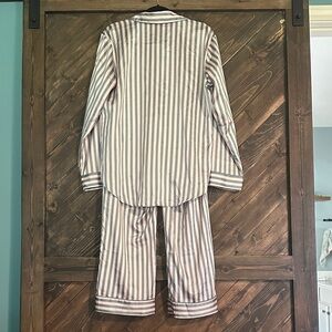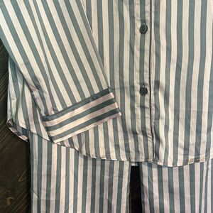 Reposting cause too small when I tried on- great condition- Chic striped pajama set. Button-up top with pocket. Comfortable pants with cuffed hems.