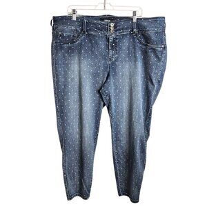TORRID DENIM Skinny Jeans Pants MEDIUM WASH BLUE w POLKA DOTS size 24 Smoothing