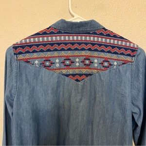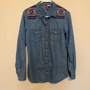 Divided H&M Western Embroidered Denim Pearl Snap Long Sleeve Shirt Size 6