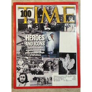 The product is a Time Magazine issue from June 14, 1999, featuring a special section on 100 Heroes and Icons of the Century. This magazine, written in English and published monthly, showcases news and general interest topics relevant to the era. Specifically, it highlights notable figures such as Monroe and Jordan, making it a valuable and collectible item for those interested in history, politics, and culture from the late 20th century.
