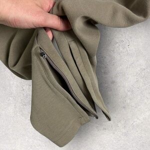 Aesthetic Revolution ASRV Tan Pants in Size Medium. Machine washable. Back pocket. Zippered pockets. Zipper detail at the ankles. Reinforced crotch area. Ribbed elastic waist. Made in Korea. 85% cotton, 12% poly and 3% spandex. Retails for $148 USD (approximately $206 CAD). Very good pre-owned condition - see photos. Please note that the drawstring (if there was one) is missing.