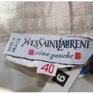 VTG YSL Yves Saint Laurent Rive Gauche double pleated high waist straight leg pants size 0, in good pre-owned condition: no holes, no stains, minor wear, has been recently ozone sanitized, may be stale from storage. Marked as a Euro size 40, and measures like a US women's size 0 (may have been altered), measurements are taken while laying flat and are approximate: (see photos)