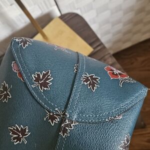 REVERSIBLE CITY TOTE IN FLORAL PRINT COATED CANVAS (COACH F12176)DARK TEAL/BLUE