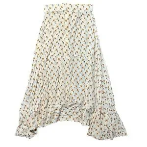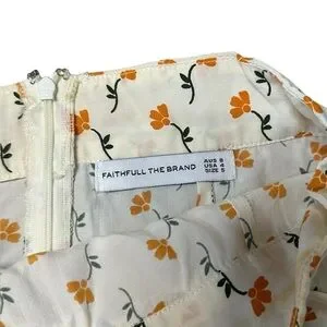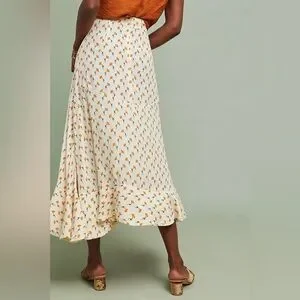 Gorgeous floral, flowy, ruffled Kamares Skirt in Marje Floral Print from Faithfull The Brand Anthropologie in size 4. Perfect for fall, just add a sweater. Asymmetrical hemline. Cream background with orange flowers and green leaves. Hidden zipper in the back and matching tie belt.