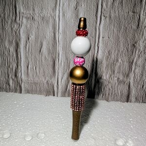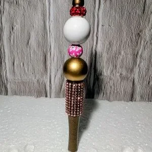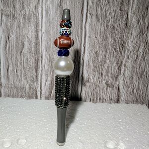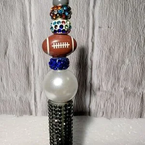 Elegant accessory with gold and pink beads. Football themed pen with sparkle and bling. Features sparkling details.
