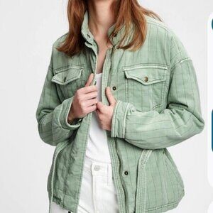 GAP Quilted Utility Jacket Casual Pockets Sage Green Cabincore Rustic Size Small