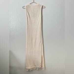 Anthropologie Callahan Knitwear Isla Fringe Knit Midi Dress Ivory Cream w/slip