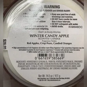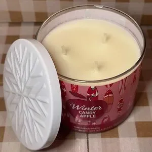 NEW B&BW Winter Candy Apple Sandy Claus 3 wick candle