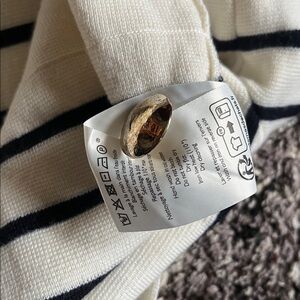 J26 Sezane wool cardigan ecru with stripes and gold button