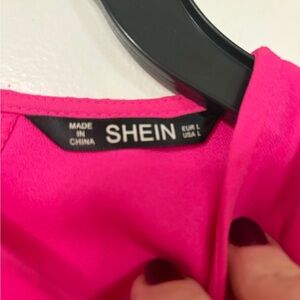 SHEIN Vibrant Pink Puff Sleeve Blouse