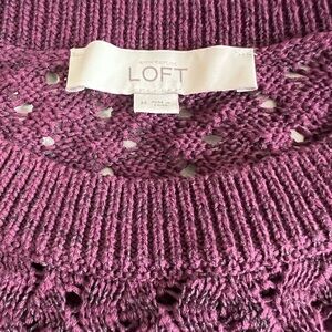 Ann Taylor LOFT Techno Stitch Knit Hi Low Sweater Burgundy Size Medium