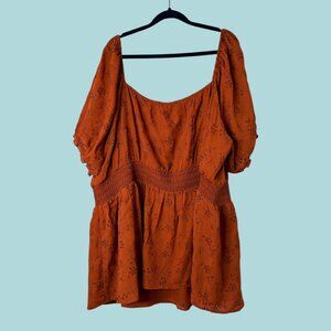NEW Torrid Georgette Eyelet Smoked Waist Puff Sleeve Cinnamon Brown Size 4 (26) Peplum Top
