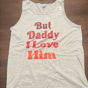 This stylish gray sleeveless top features bold red text, perfect for a fun and casual look. Ideal for anyone who love to express themselves.