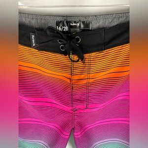 Hurley Shoreline Swim Trunks Size 16/28 | Neon Ombre Stripe Board Shorts