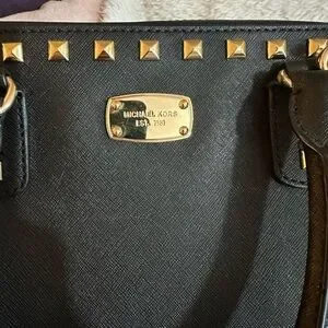 Michael Kors Elegant black handbag with gold stud accents. Perfect for any occasion. Large fixable dents shown in photos
