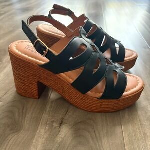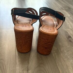 Bella Vita Made in Italy Black Leather Wedge Sandals Strappy Platform Heels 7W