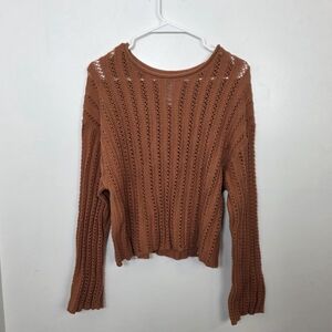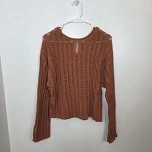 BillaBong Orange Brown Open Knit Beachy Boho Good Luck Sweater Size Medium
