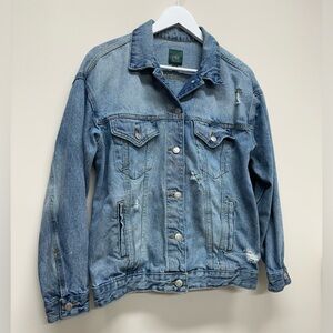 Wild Fable Women’s Green Label Distressed Y2K Denim Jean Jacket sz XS