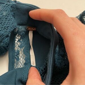 FREE PEOPLE bodycon dress with bell lace sleeves!