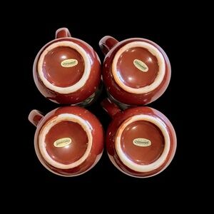 Beautiful set of 4 vintage ceramic mugs by Counterpoint San Francisco, made in Japan. Each mug features a unique animal design (chicken, snail, butterfly, snail) on a rich reddish-brown glaze. Perfect for coffee, tea, or display! Made in 1970’s
