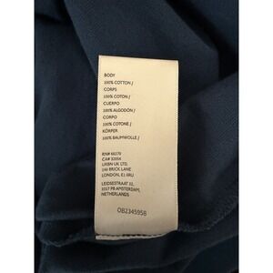 The Anthropologie Daily Practice Graphic T-shirt Midi Dress in navy and white, size XS, is a stylish and comfortable option for casual or travel occasions. Made of cotton with a knit fabric type, this dress features a crew neck, short raglan sleeves, and a logo accent. The graphic print adds a touch of retro college style, making it perfect for summer, fall, or spring seasons. Easy to care for with machine washable instructions, this dress is a versatile and fashionable addition to any woman's wardrobe.