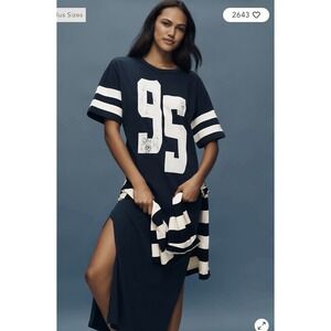 NWOT Anthropologie Daily Practice Graphic T-shirt Midi Dress Navy/White XS