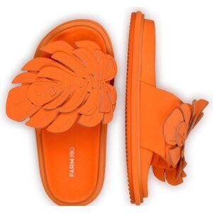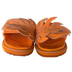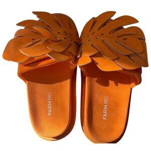 Farm Rio Monstera Anatomic Slide Sandals Orange Size 7 New In Box
