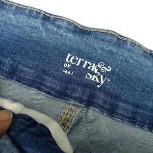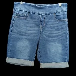 Terra & Sky Womens Jean Shorts Plus Size 14W Blue Cuffed Stretch Mid-Rise Denim