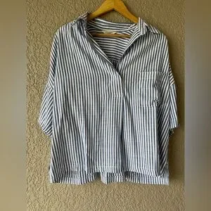 Max Studio Navy and White Striped Top