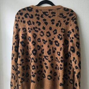 Chic leopard print sweater. Soft and stylish. Ideal for casual wear.