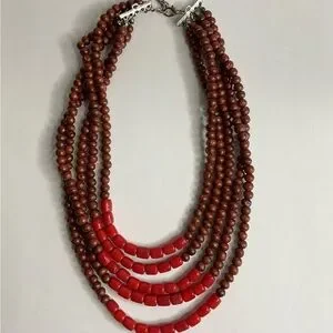 Beaded Red and Brown Multi Strand Necklace