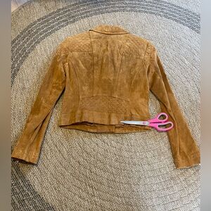 Express Women's Suede Moto Jacket camel Colored, size xs, zip pockets & sleeve