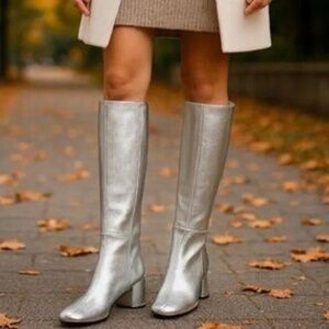 Circus by Sam Edelman silver tall Oaklyn Leather heeled boots 7 new