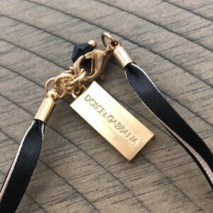 Dolce & Gabbana signature black and cream floral satin ribbon bracelet. Unused. Brand new in box with velvet pouch.