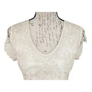 Y2K Formal Fairy Core Tunic/Dress Sm Goldish Cream Crochet Overlay Victorian