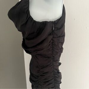 Anthropologie Atoir Sequoia Ruched Black Thigh Slit Criss Cross Dress Size 4