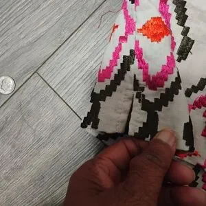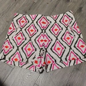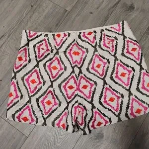 Pre-owned stylish women's linen embroidered shorts featuring a vibrant pink, red and orange pattern, 2 Front Welp Pockets, NO Back Pockets with Side Zipper Closure. Perfect for a bold, fashionable look.