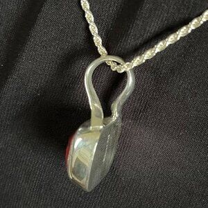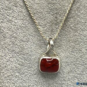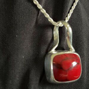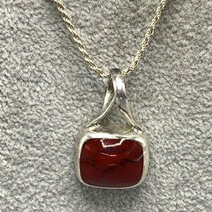 Vintage Mexican Red Jasper & Sterling Silver Pendant w/fine Italian Silver Chain