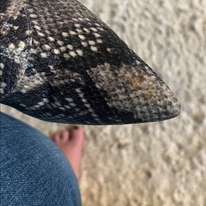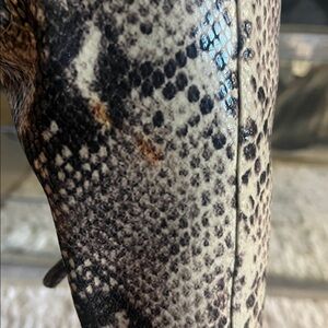 Chic snakeskin pattern. Sleek heeled design. Perfect for stylish outings. Very sexy boot.