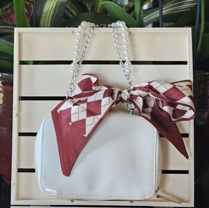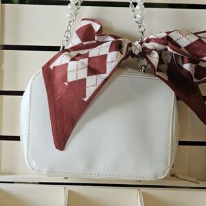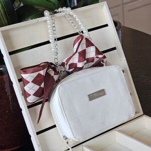 Burberry White Patent Leather Clutch With Faux Pearl Wristlet & Twilly Added