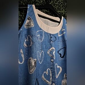 Stylish blue dress with white heart prints. Ideal for casual wear.
