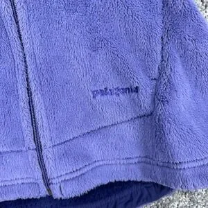 Patagonia Jacket Womens Medium Purple Long Sleeve Zip Up Fleece Logo Outdoor